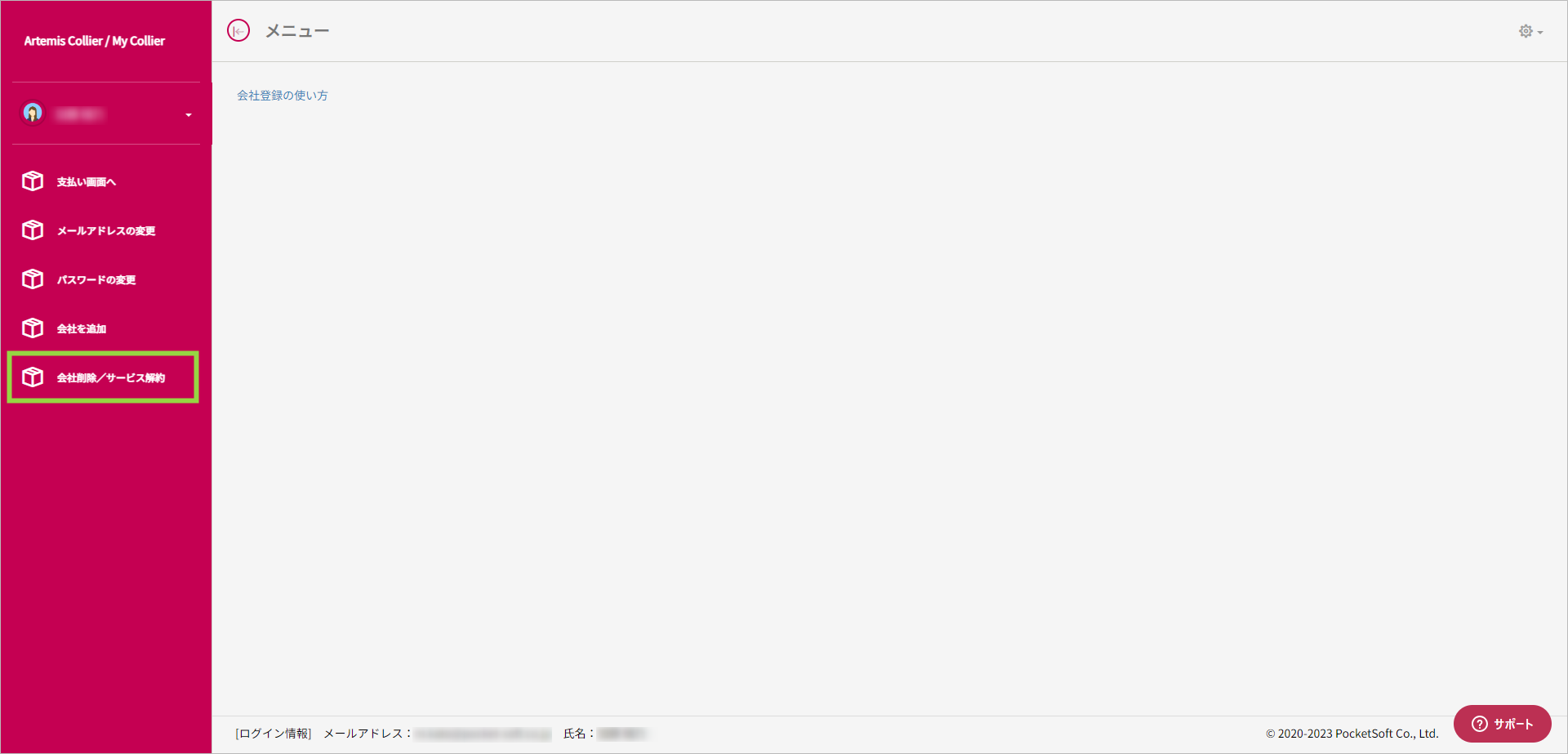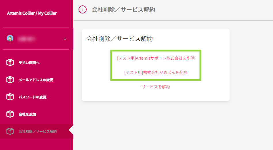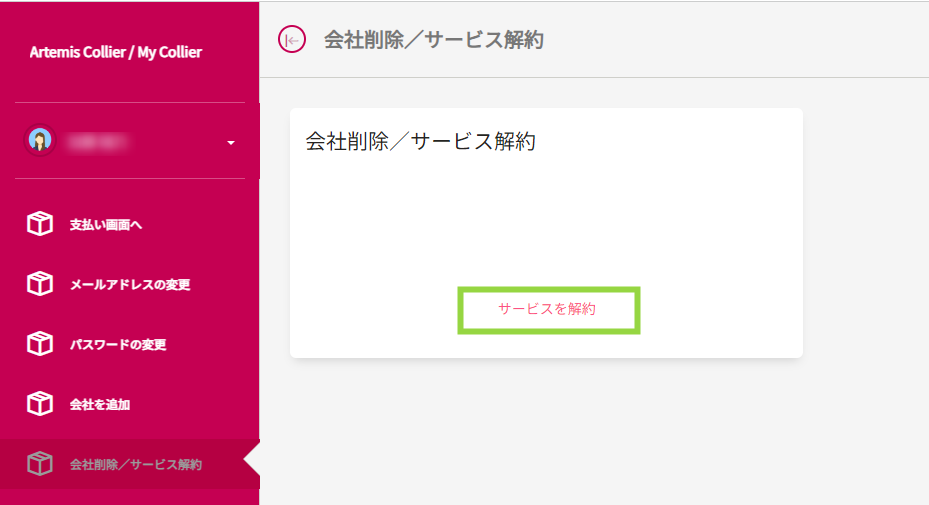 削除できましたら4に進んでください。 - 「サービスを解約」をクリックします。