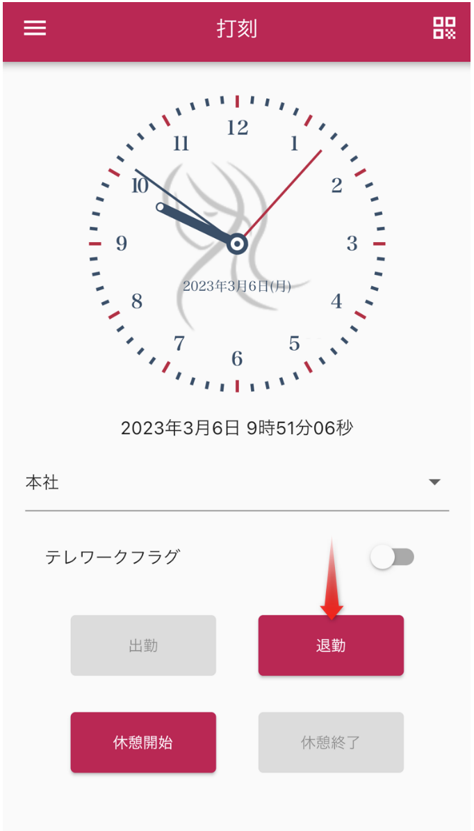 一日の仕事が終わりましたら、退勤ボタンを押してください。