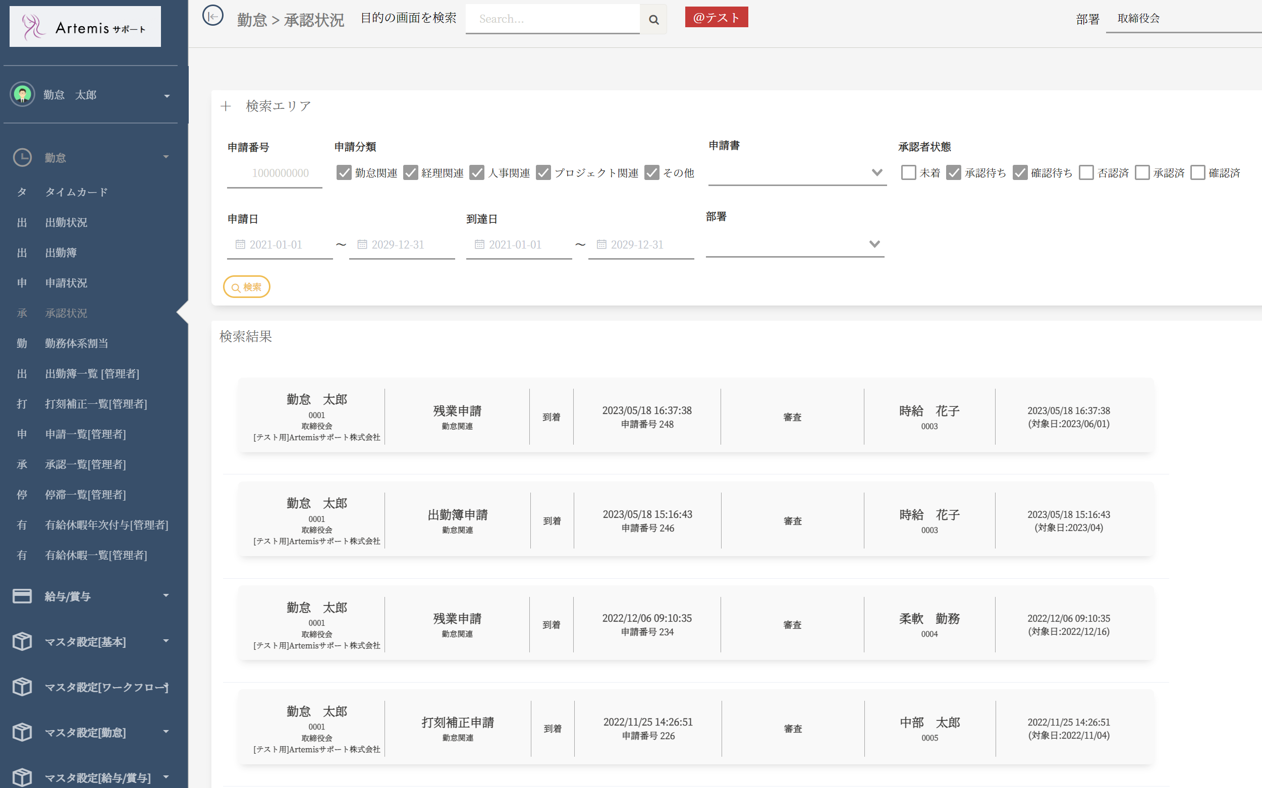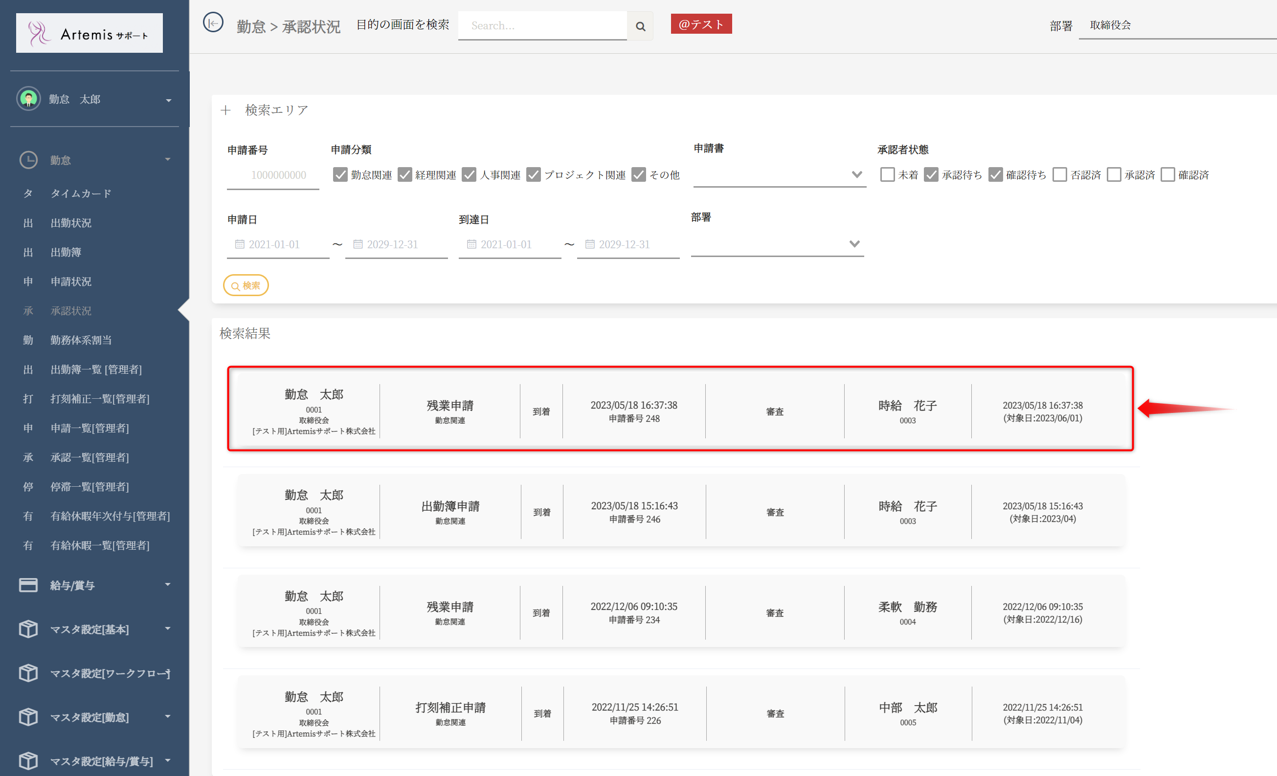 ボタンを押すと承認依頼の申請書が一覧で表示されます。