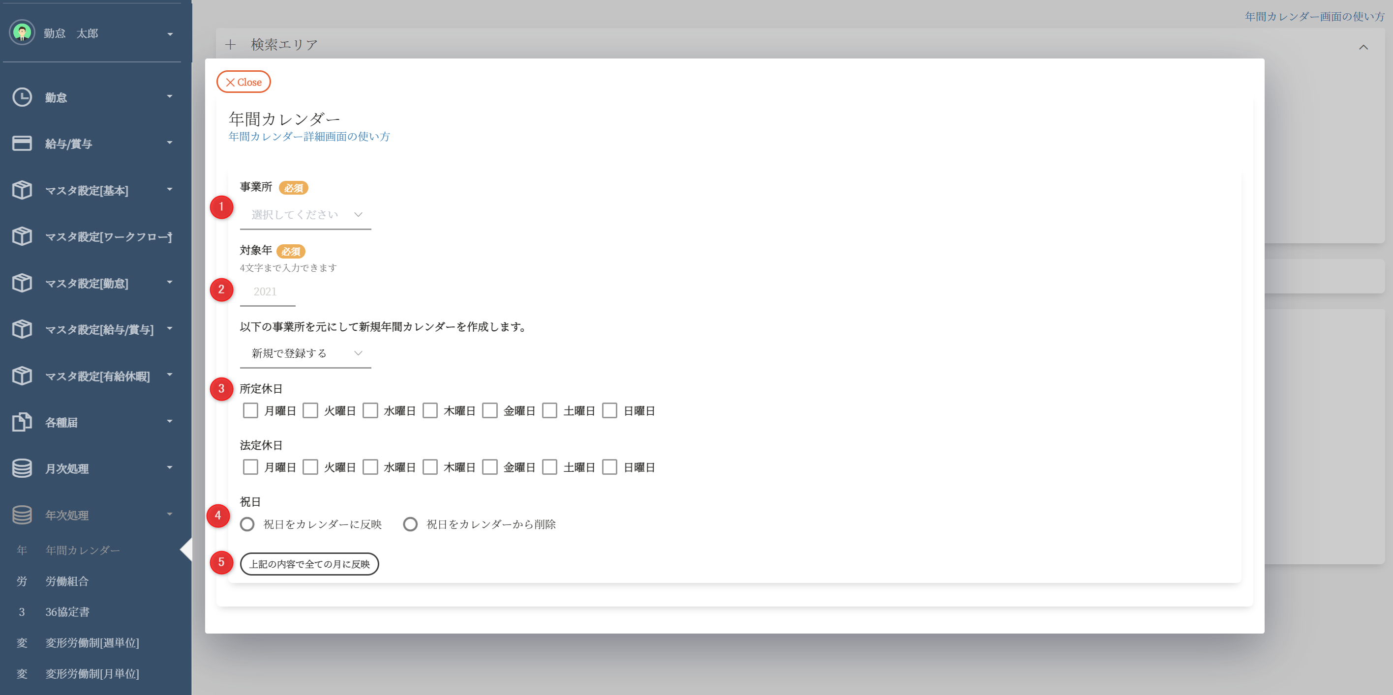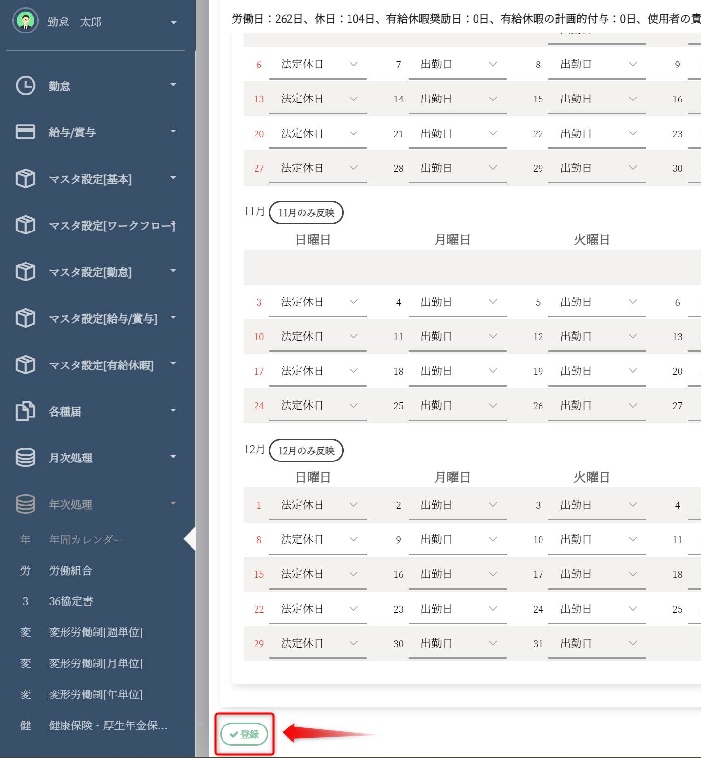 ※カレンダー登録や年次締めがされていない場合、翌年の勤怠関連のシステムをご利用いただくことができません。必ず毎年行うようお願いいたします。