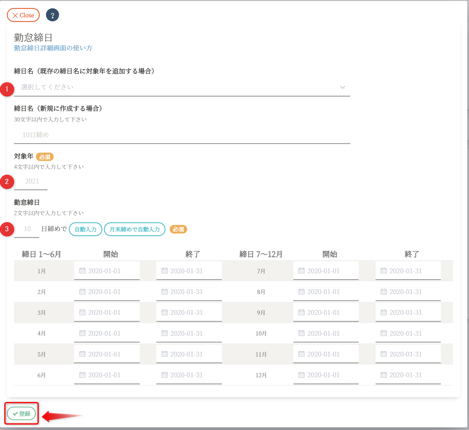 勤怠締日画面の使い方の詳しい説明はこちら