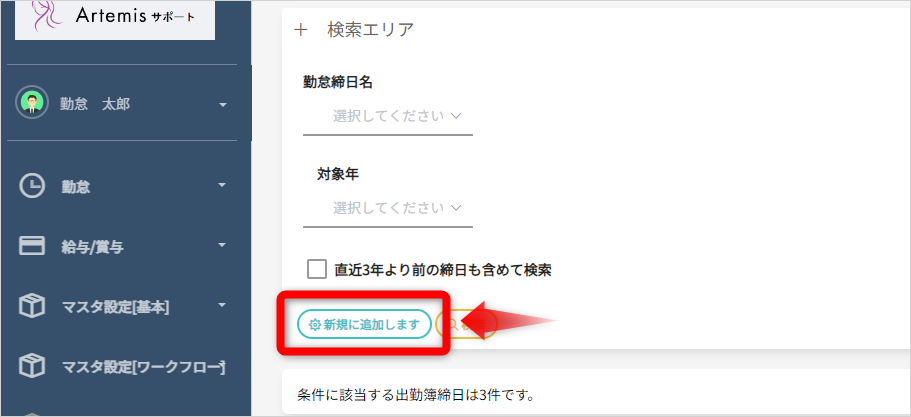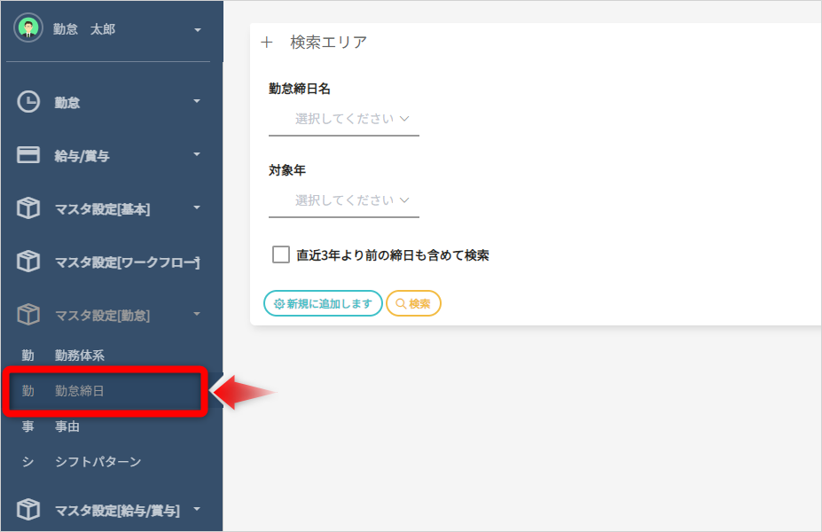 手作業で登録する場合、「マスタ設定(勤怠)>給与締日」を開きます。
