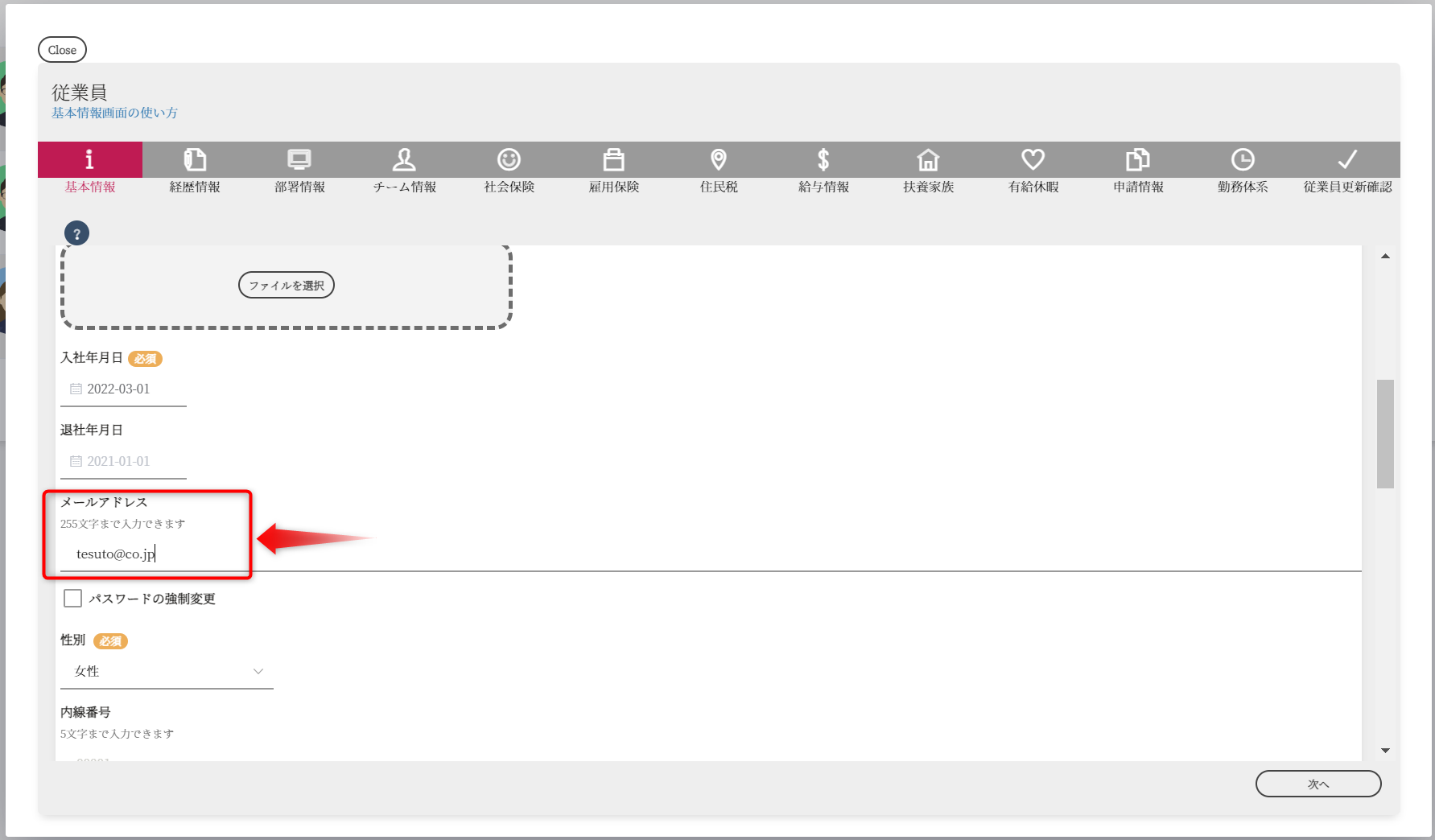 入力が完了しましたら従業員更新画面で情報を更新してください。