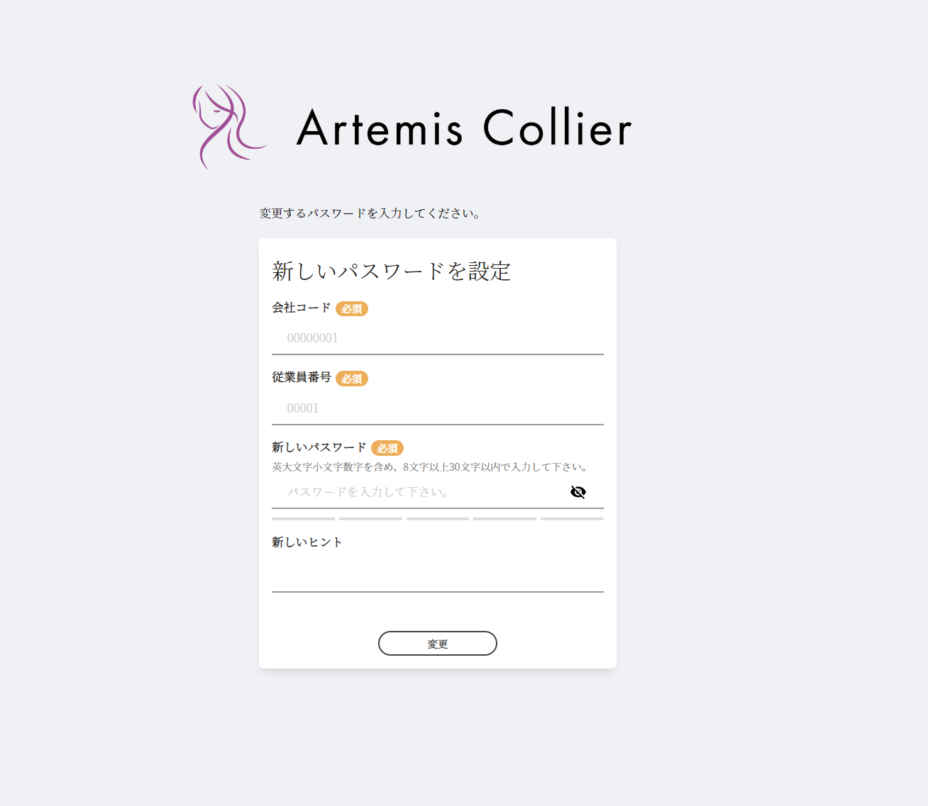 新しいパスワードを設定し、変更ボタンを押してください。