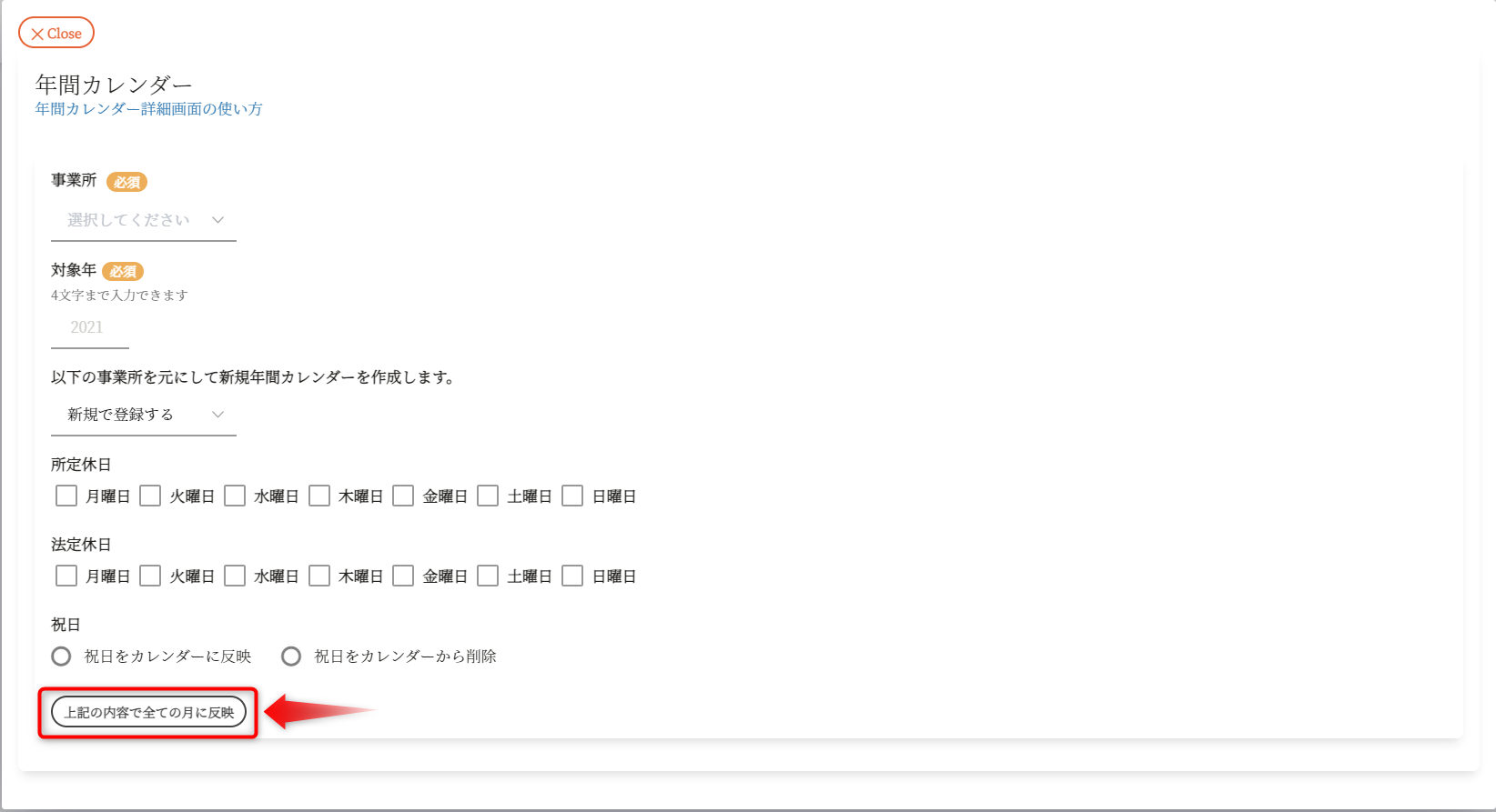 全ての項目を入力し、「上記の内容で全ての月に反映」ボタンを押してください。