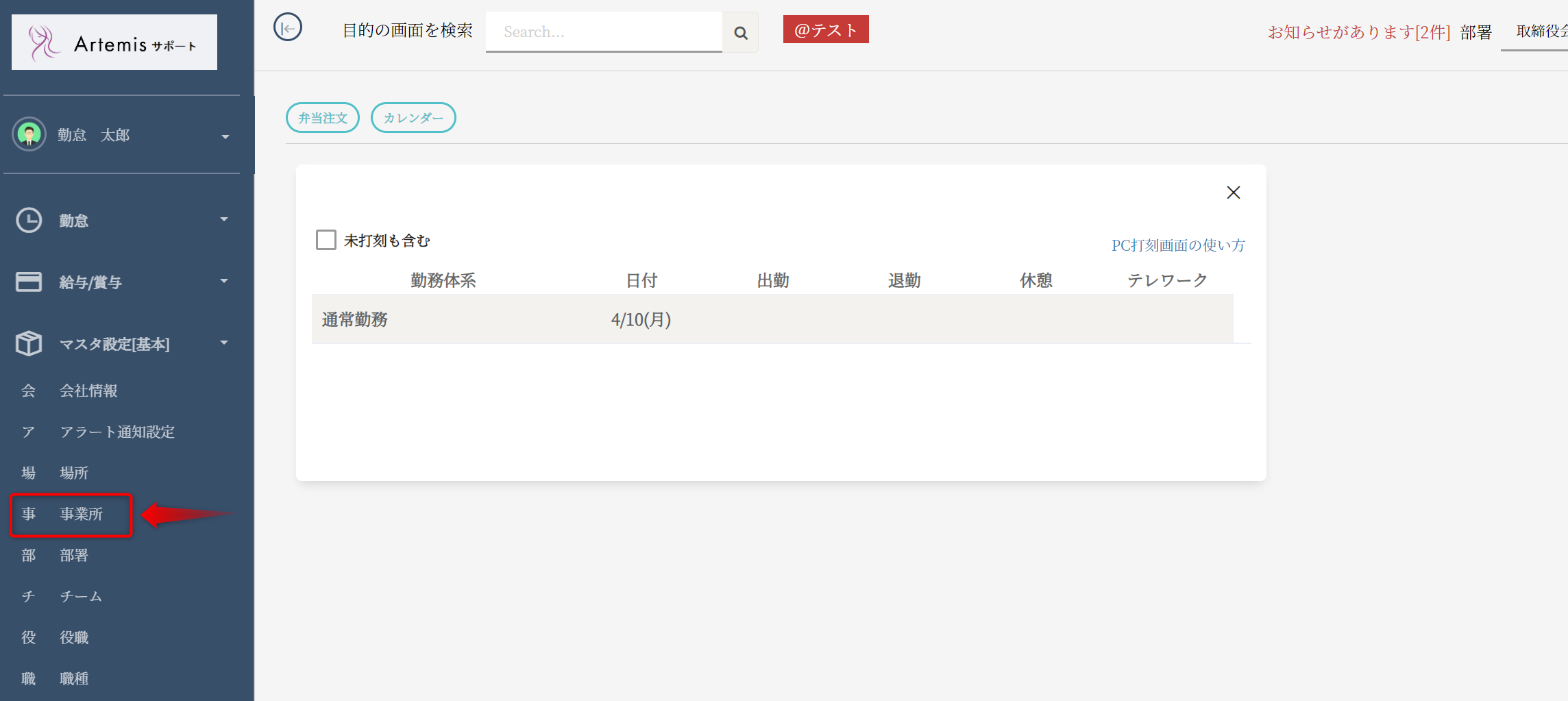 メニュー欄(左側)のマスタ設定(基本)>従業員ボタンを押してください。