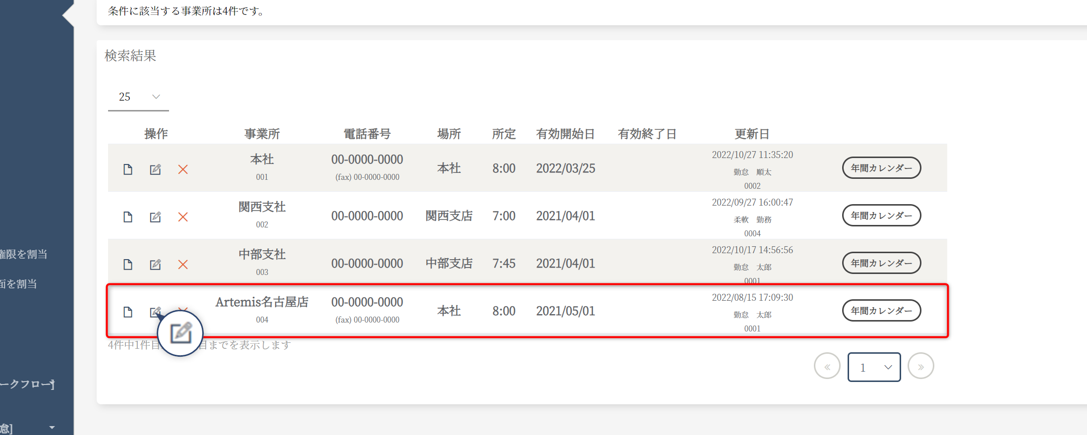 該当の従業員のエンピツボタンを選択してください。