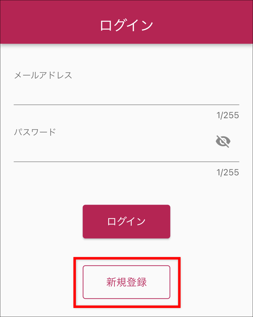 ログイン画面が表示されますので、「新規登録」をタップします。