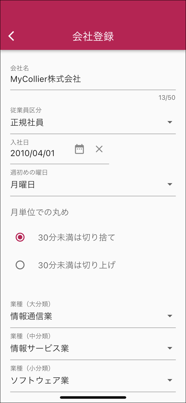 入力が終わりましたら、「登録」をタップして会社登録は完了です。