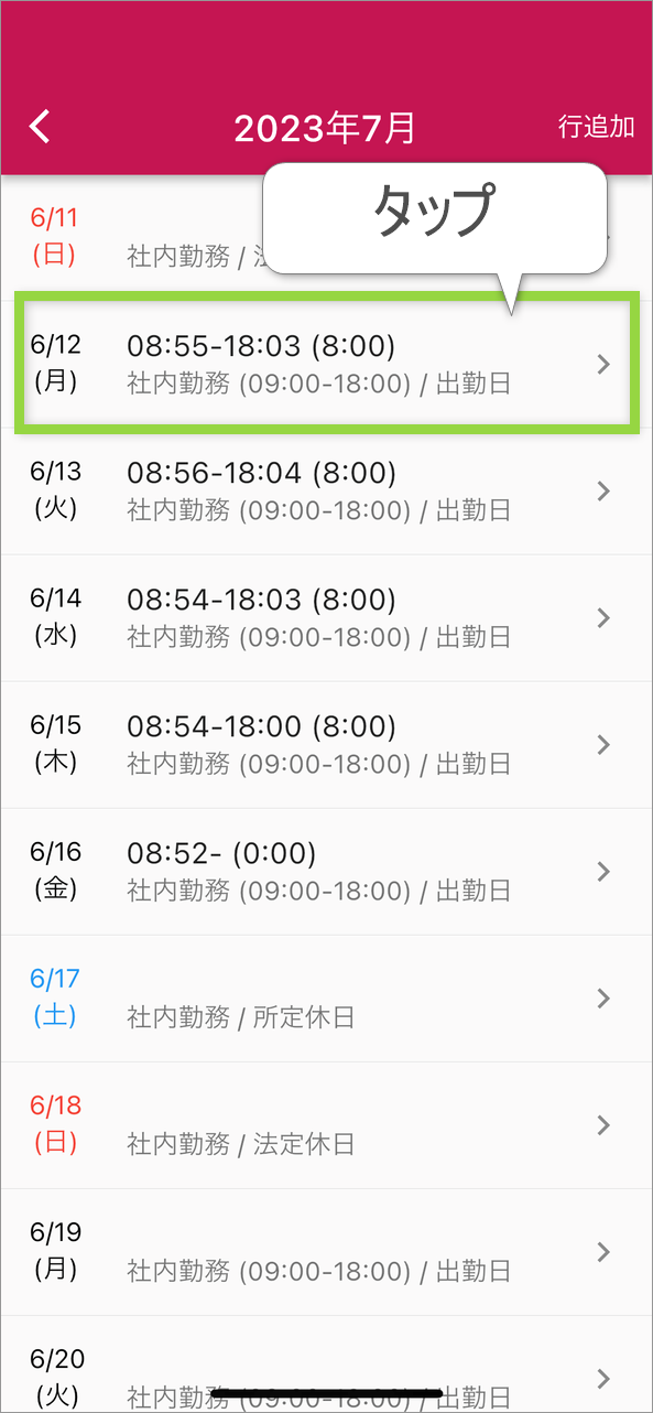 3.閲覧したい/修正したい対象日をタップすると、