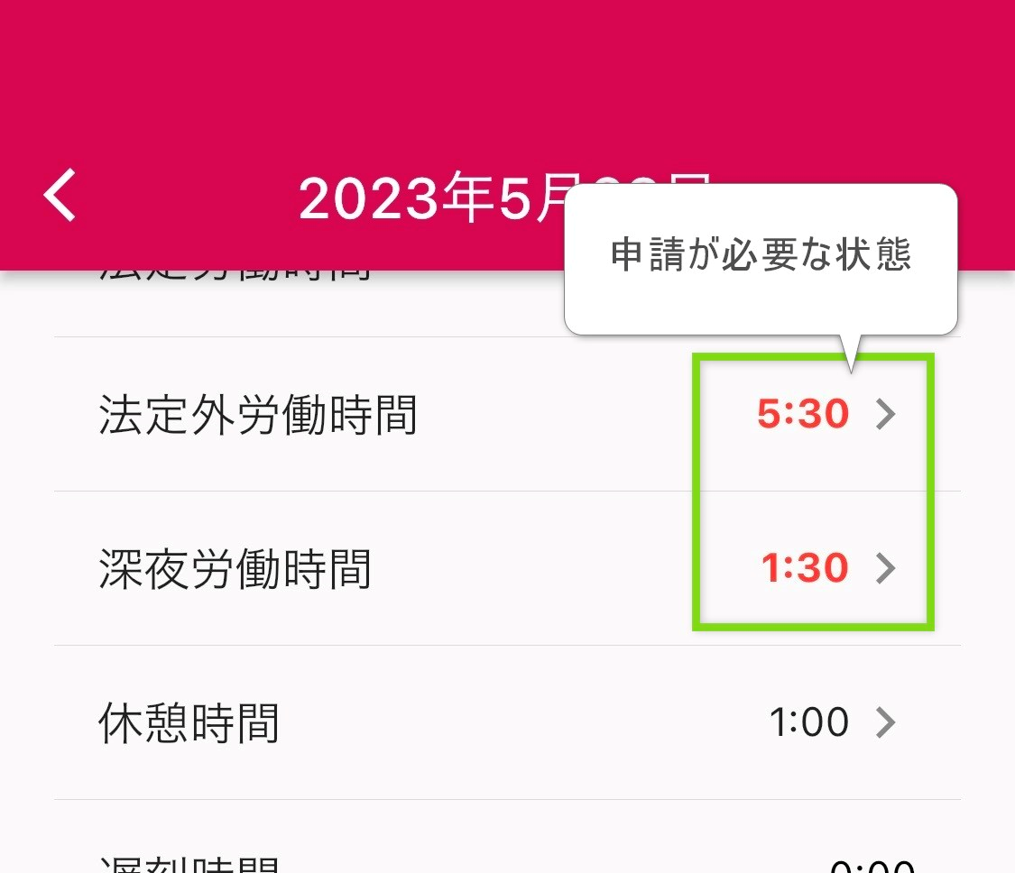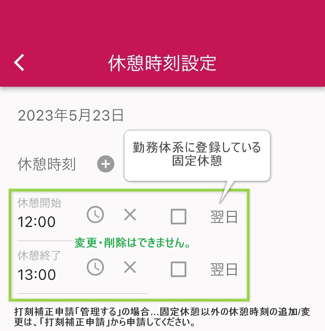 - 休憩時間を修正するには、打刻補正申請を申請します。(PCも同様)
