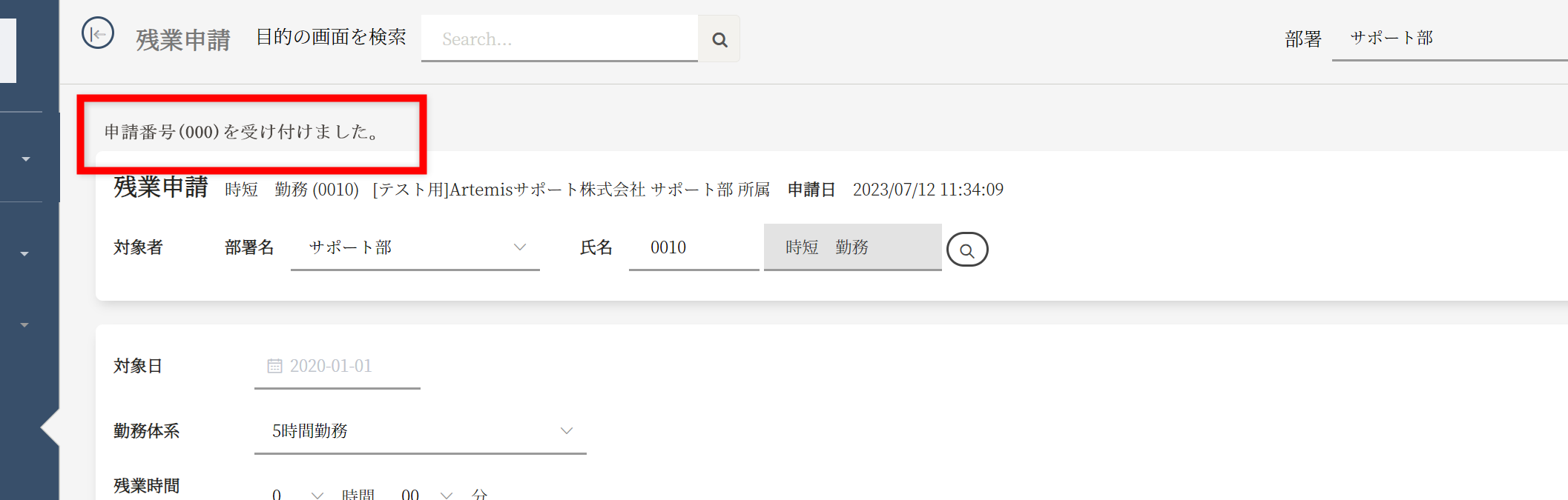- 各種届の「申請」をクリックしたとき