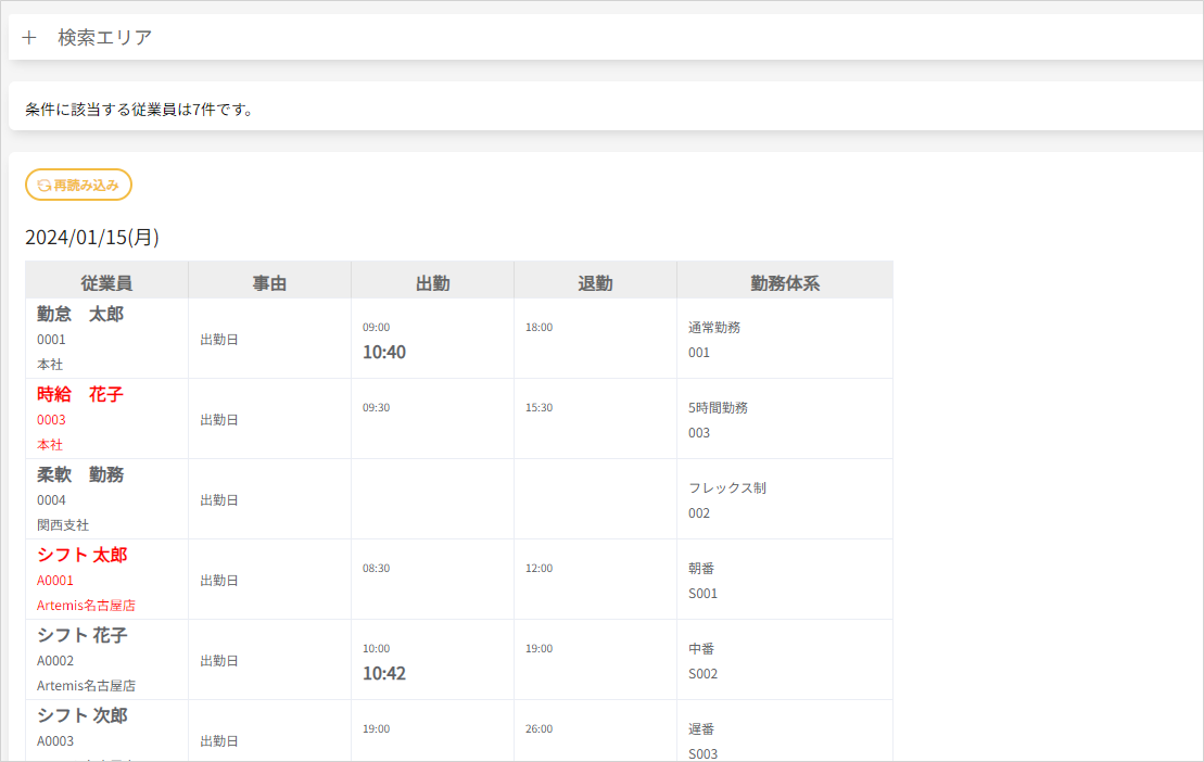 全ての従業員の出勤状況が表示されるようになりました。