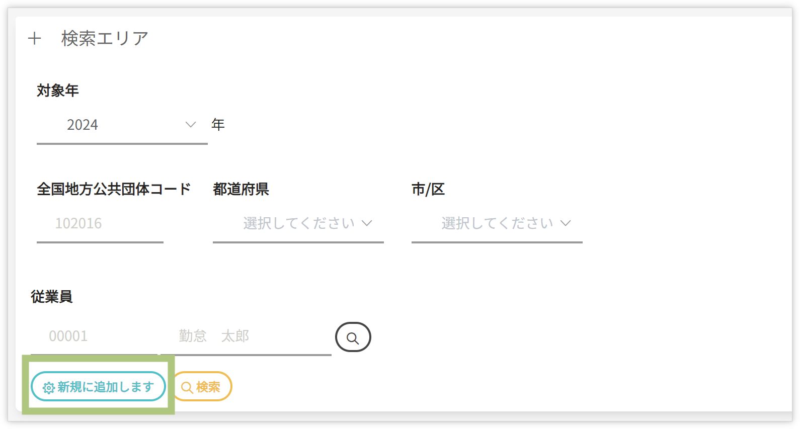 - 検索エリアの「新規に追加します」をクリックして登録画面を開きます。