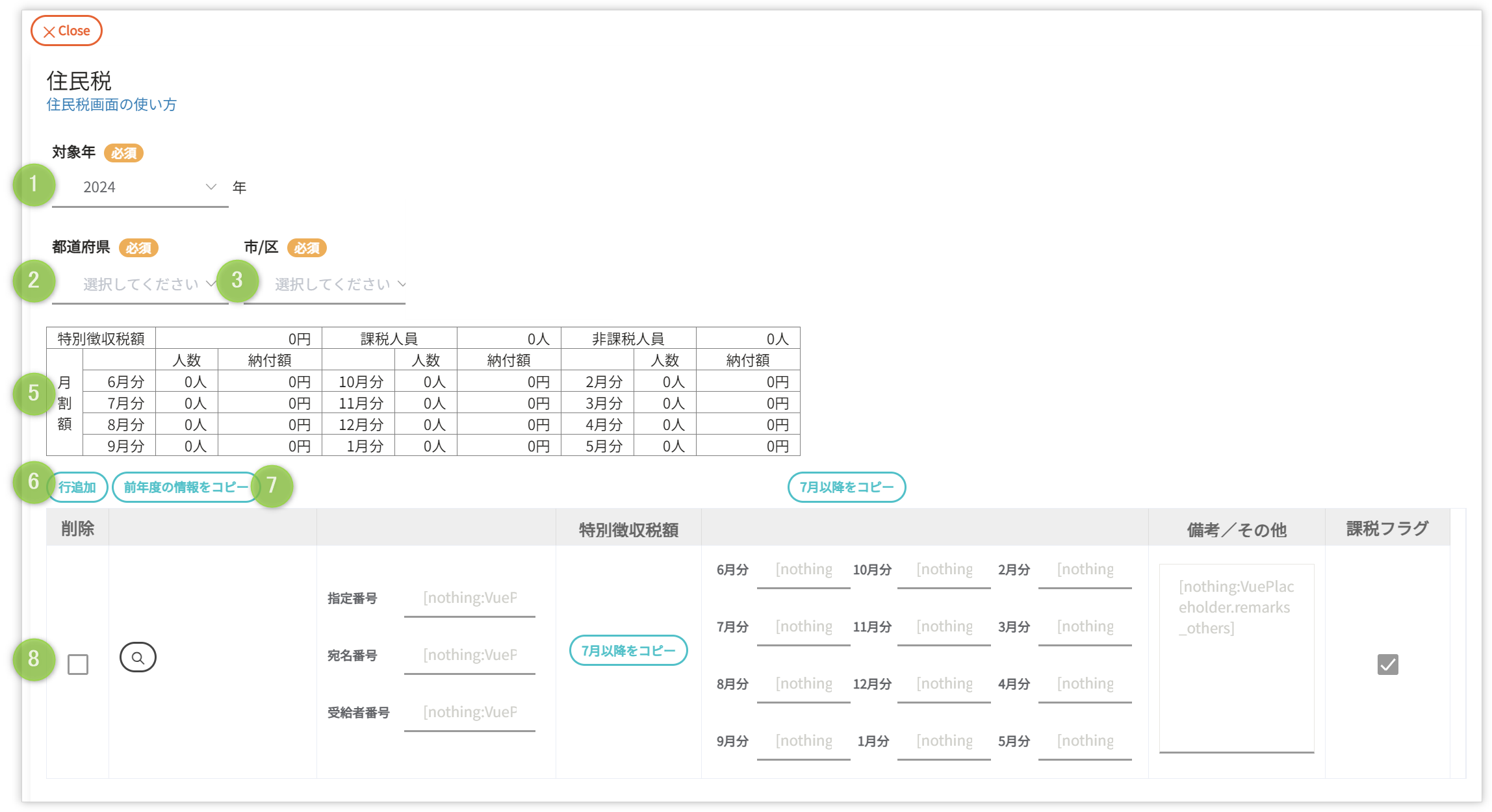 | ① 対象年 | 登録する住民税の対象年度を指定します。 |