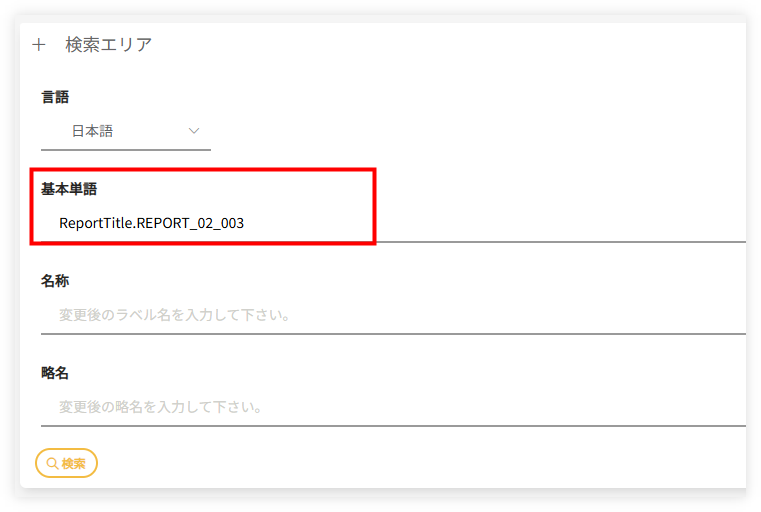 - 検索エリアの「基本単語」に「ReportTitle.REPORT_02_003」を入力してください。