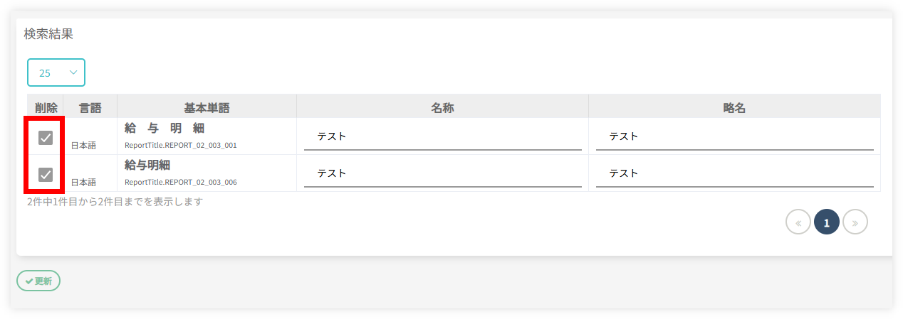 - 検索結果に表示される2件の「削除」にチェックを入れてください。