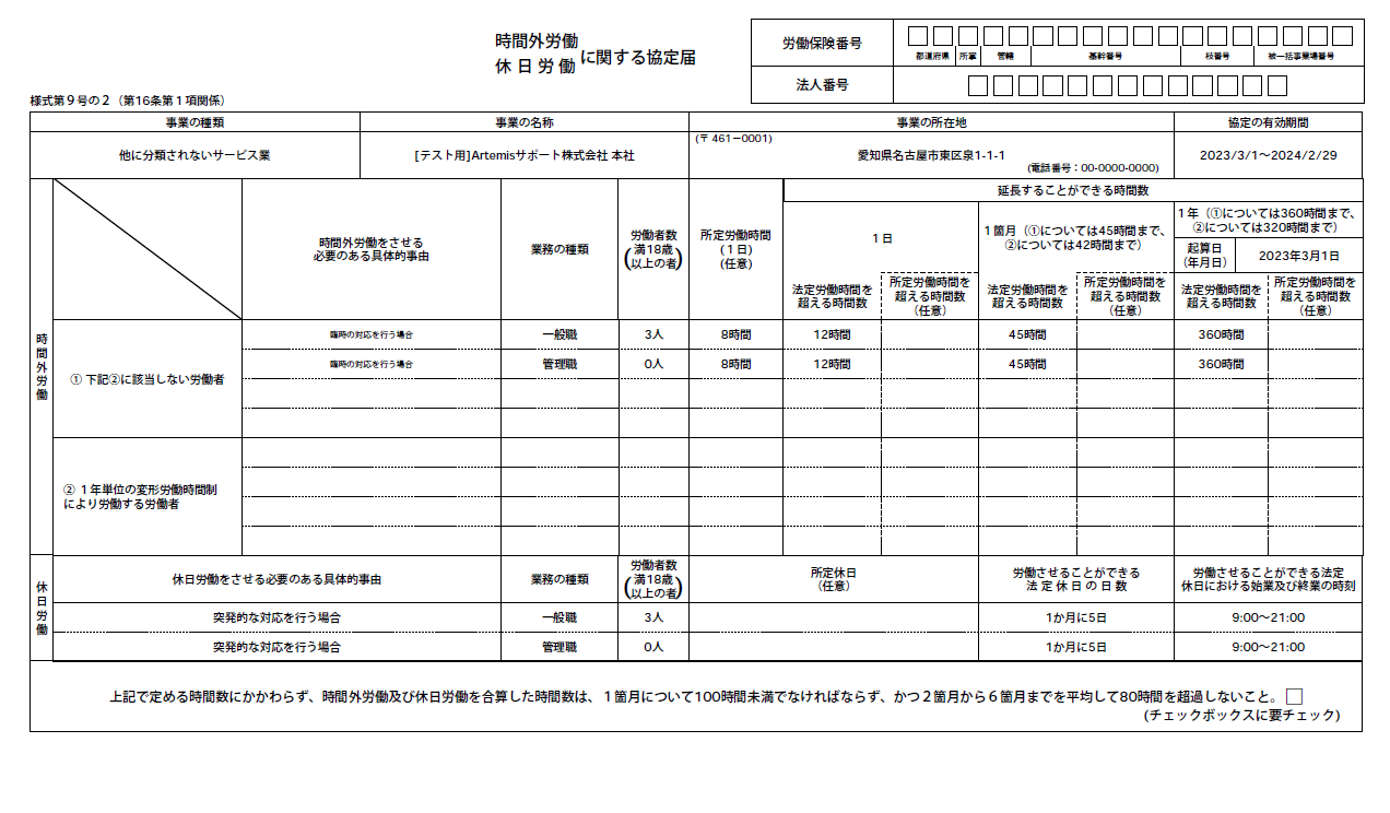 | 様式タイプ | 36協定書の様式タイプです。 |