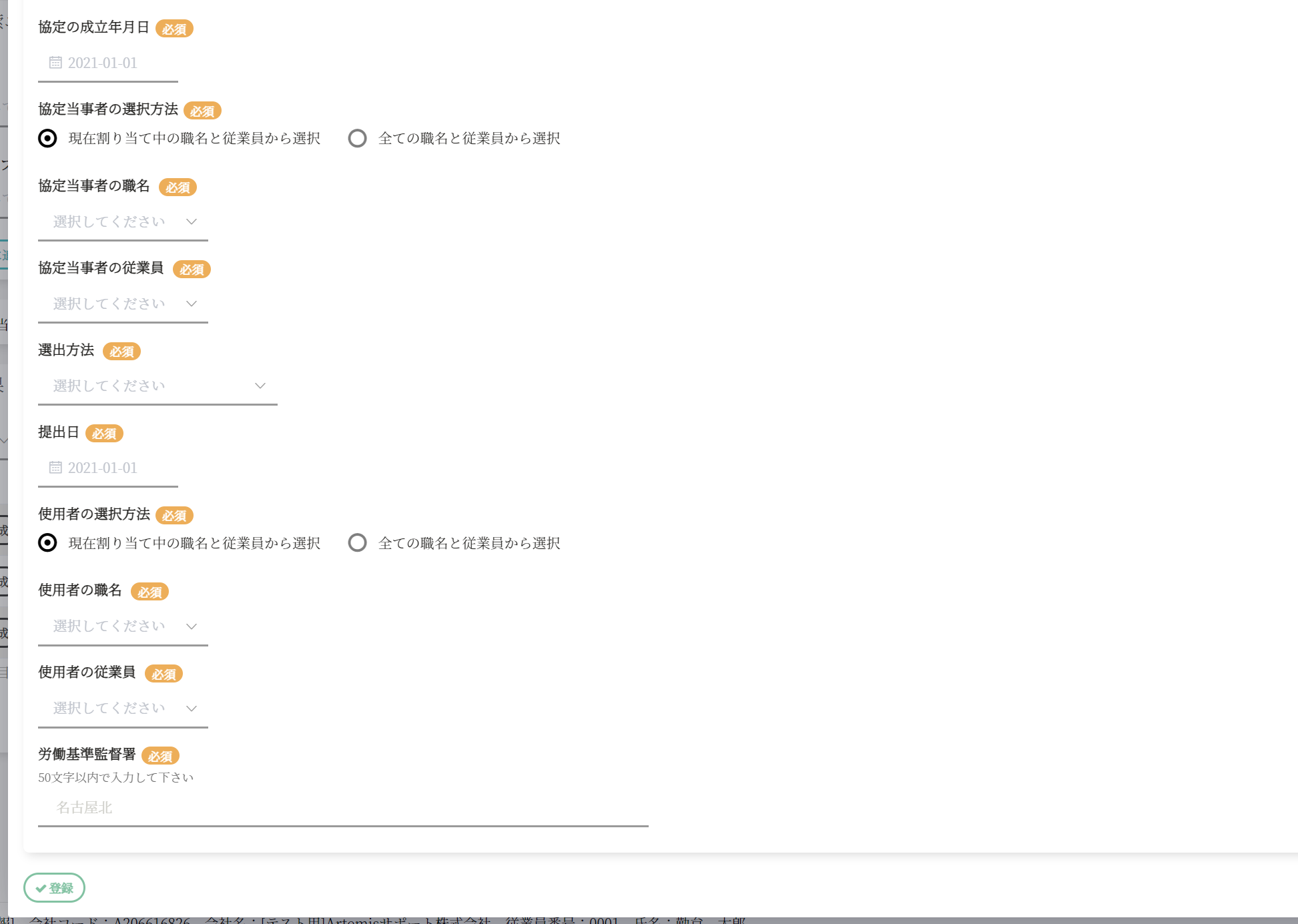 登録ボタンを押下して36協定書の登録を完了してください。