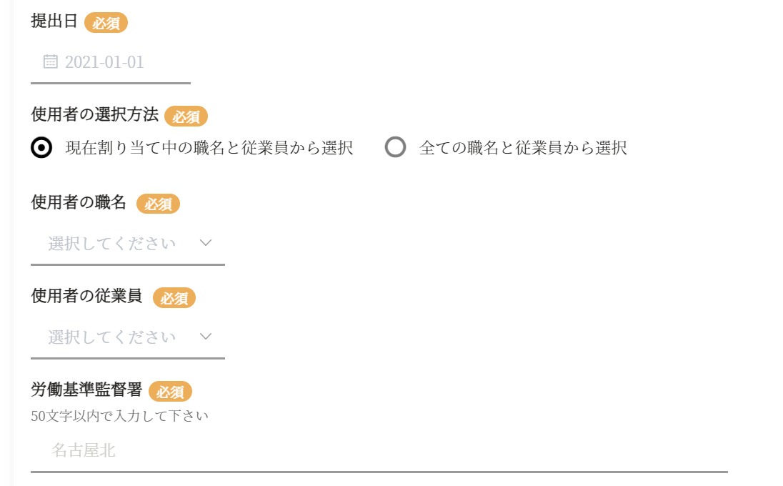 | 労働基準監督署 | 労働基準監督署名を入力してください。 |