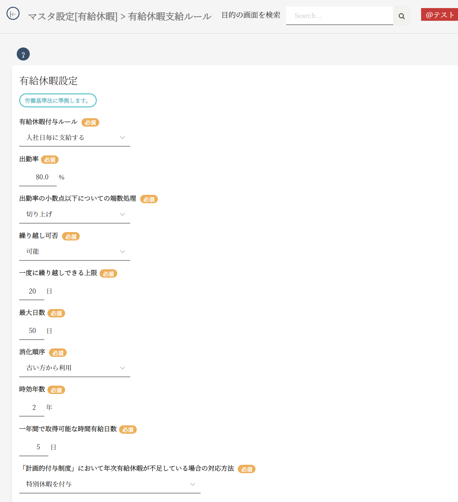 [会社情報メニュー] - [システム管理設定] Permanently deleted user 2023年05月22日 05:27 更新 基本情報 [マスタ設定[基本]] - [会社情報] が該当画面となります。 有給休暇設定 [マスタ設定[有給休暇]] - [有給休暇支給ルール] が該当画面となります。 ワークフロー設定 [マスタ設定[基本]] - [会社情報] が該当画面となります。 コメント 0件のコメント サインインしてコメントを残してください。