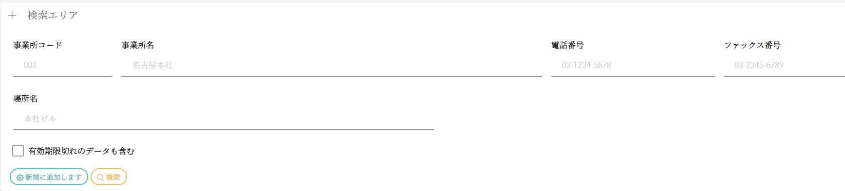 | 有効期間対象外も検索に含む | 現在の日付と比較した際、既に有効期間の対象外になっている事業所も検索に含めるか指定できます。 |