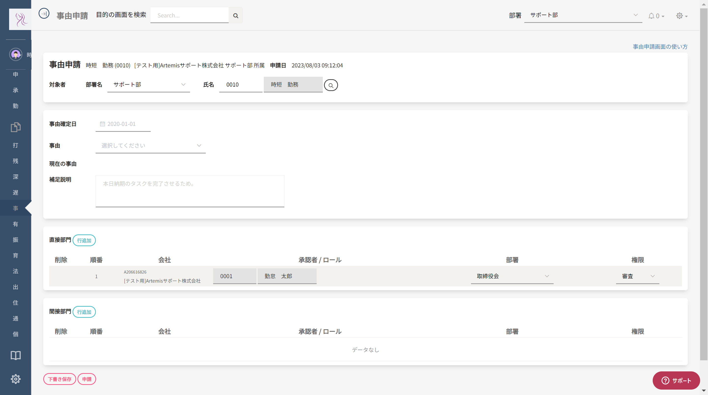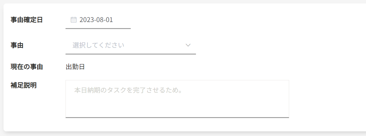 | 補足説明 | 事由の補足事項を入力してください。必須項目となっています。 |