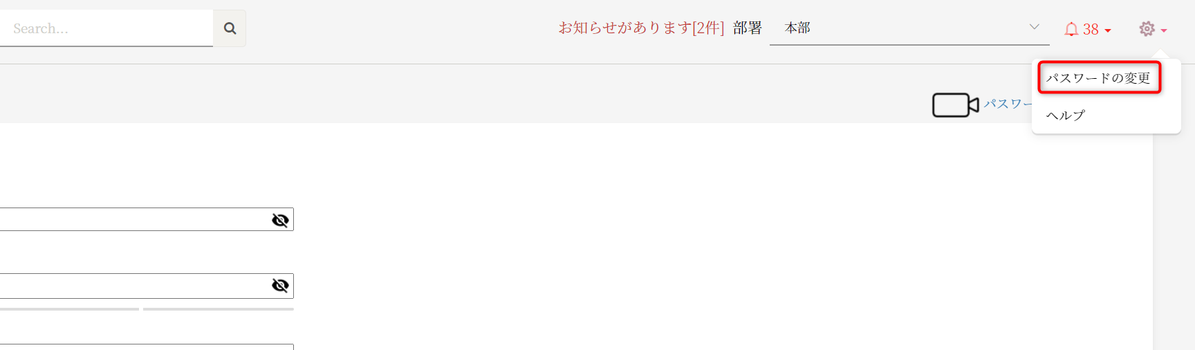 個人設定/お知らせ>「パスワード変更」画面を開きます。